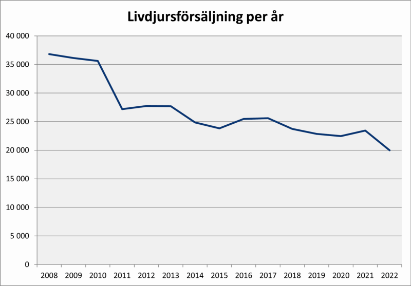Sett över en 10-årsperiod har livdjursförsäljningen minskat med 32%.